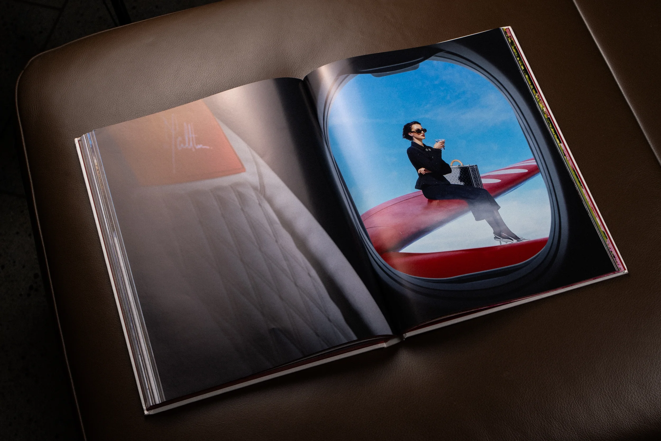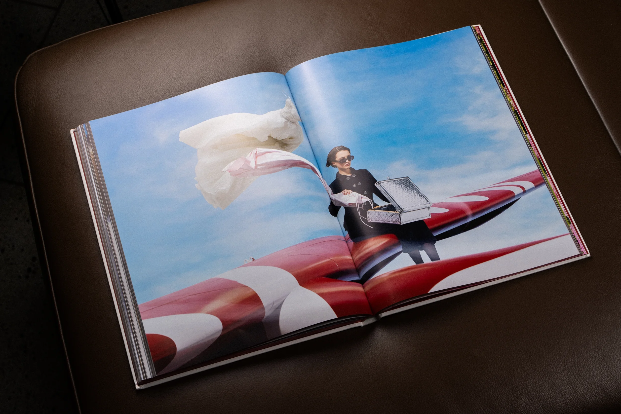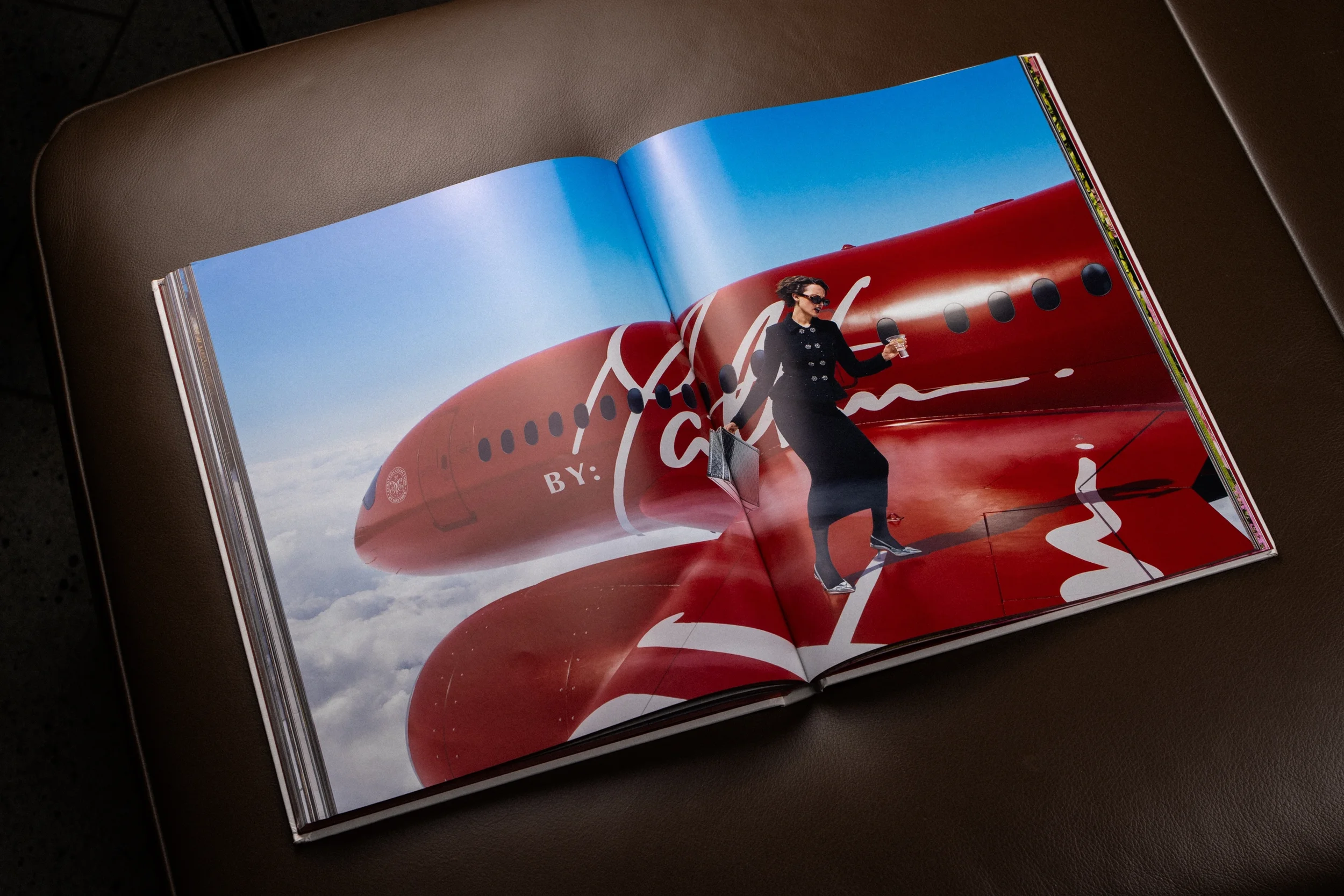 Real talent photographed on set was composited into these digital spaces, merging fashion photography with constructed worlds.